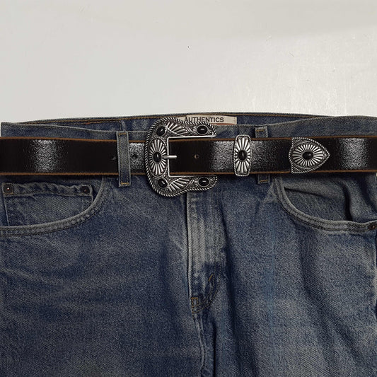 Vintage Leather Belt with Western Buckle