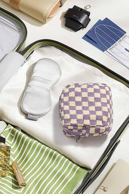 Mini Checkered Makeup Cosmetic Travel Case