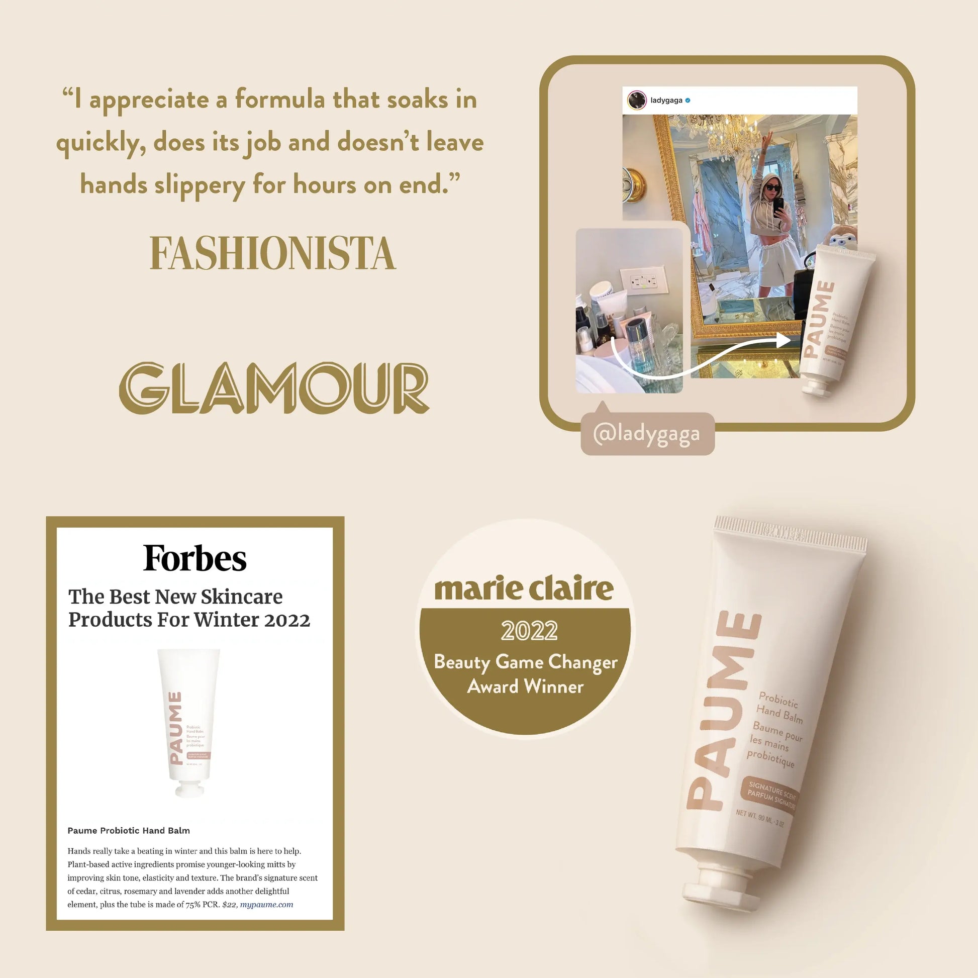 This rich, fast-absorbing hand balm is enhanced with natural probiotics and plant-based emollients that deliver long-lasting hydration and improve skin tone, elasticity and texture. Our signature blend of five essential oils provide a woodsy, citrus, herbaceous scent to delight your senses.