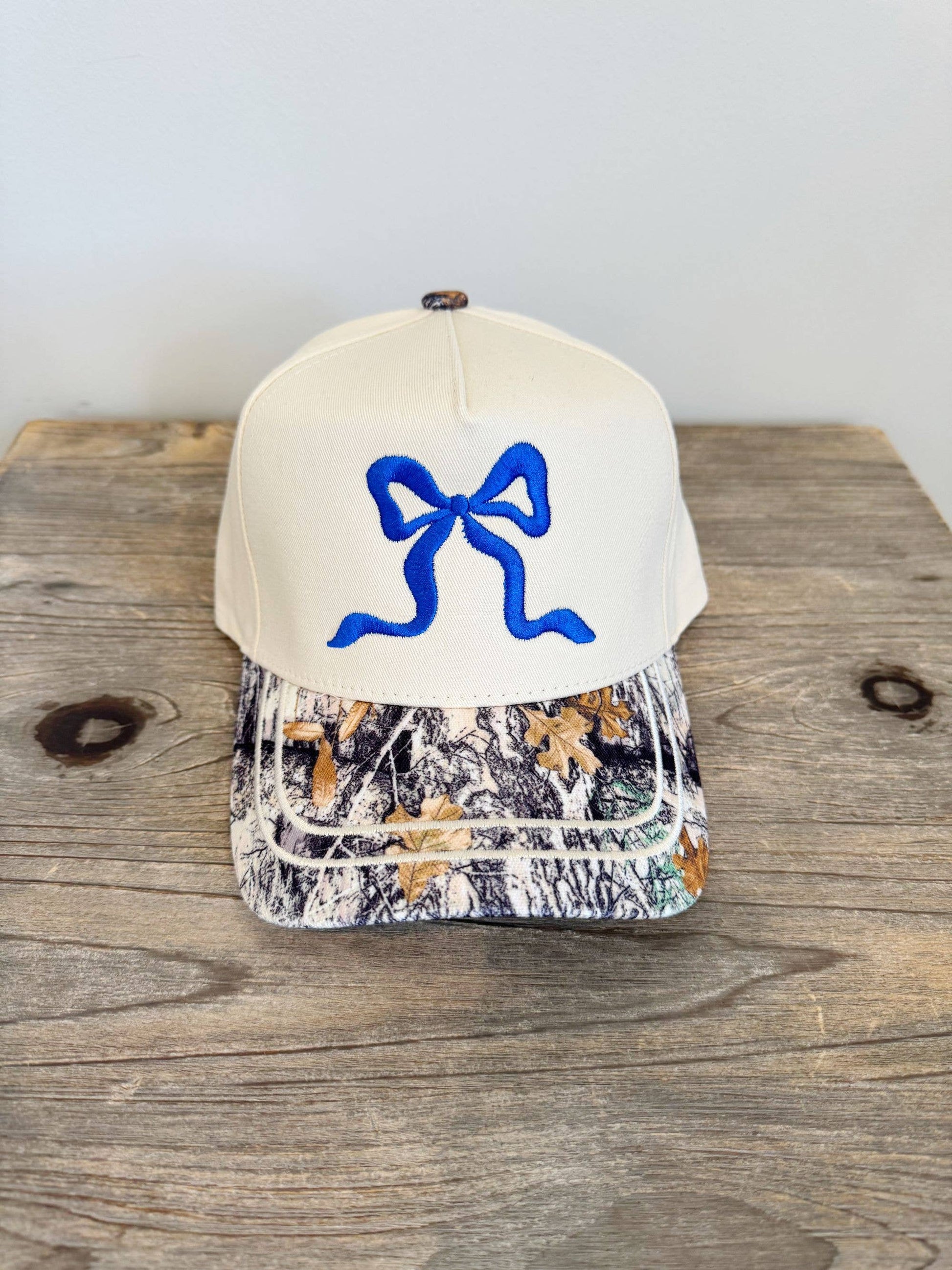 Royal Bow Hat, with cute camo detail! Trucker hat embroidered canvas hat solid with no mesh backing. *Hats are Final Sale/Non-returnable