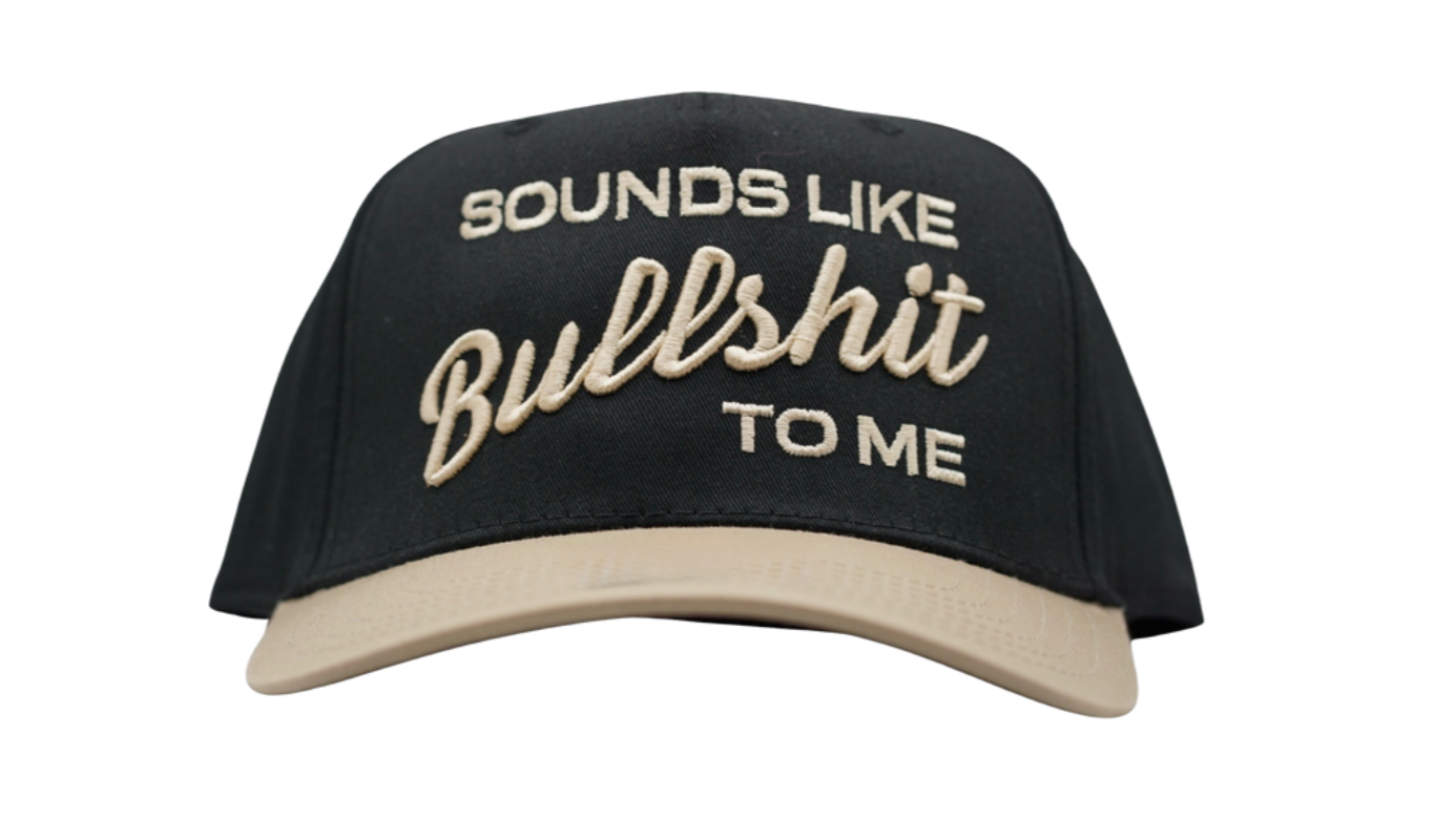 Sounds Like Bullshit To Me Trucker hat snap back closure black and tan