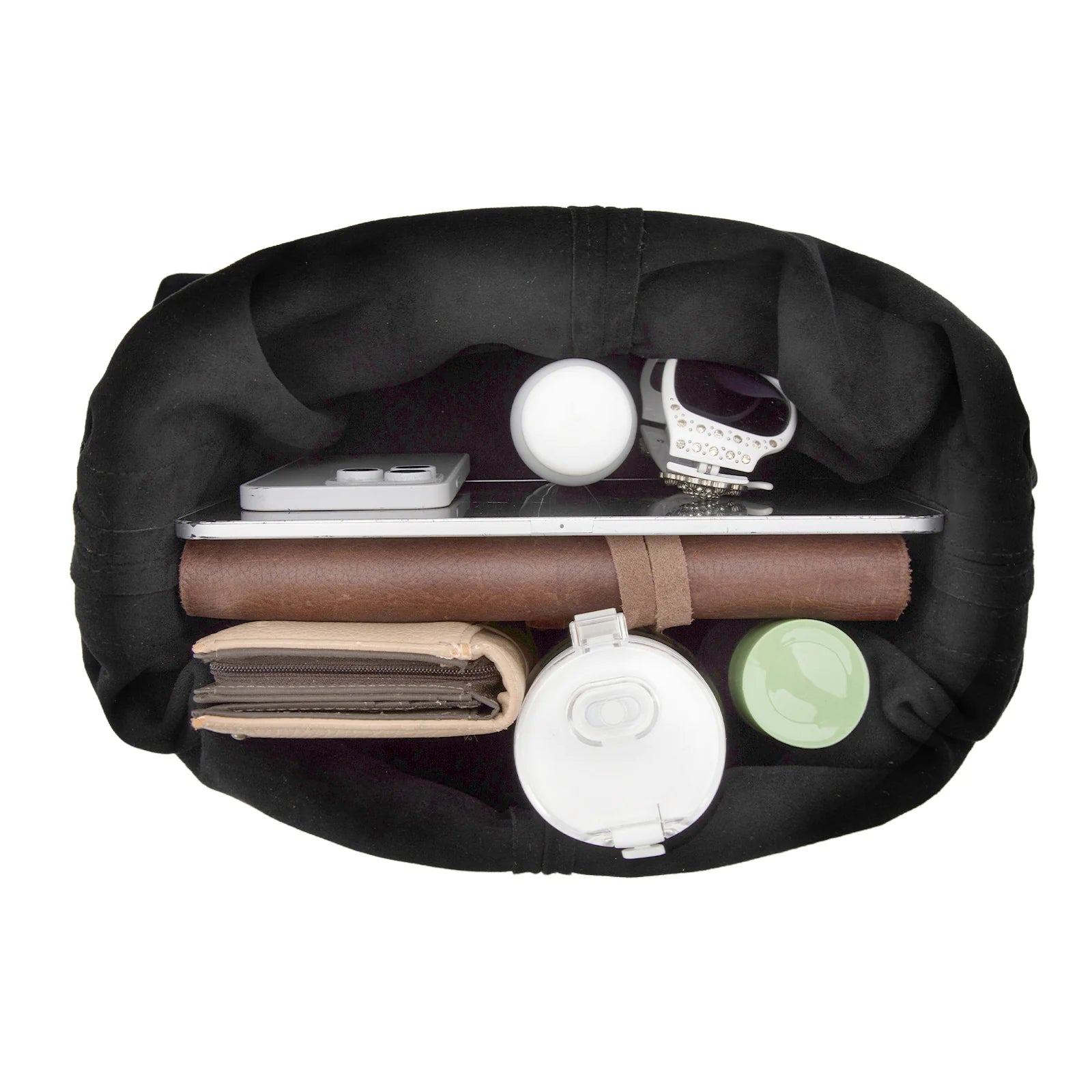- Inside of the bag includes a detachable zippered pouch